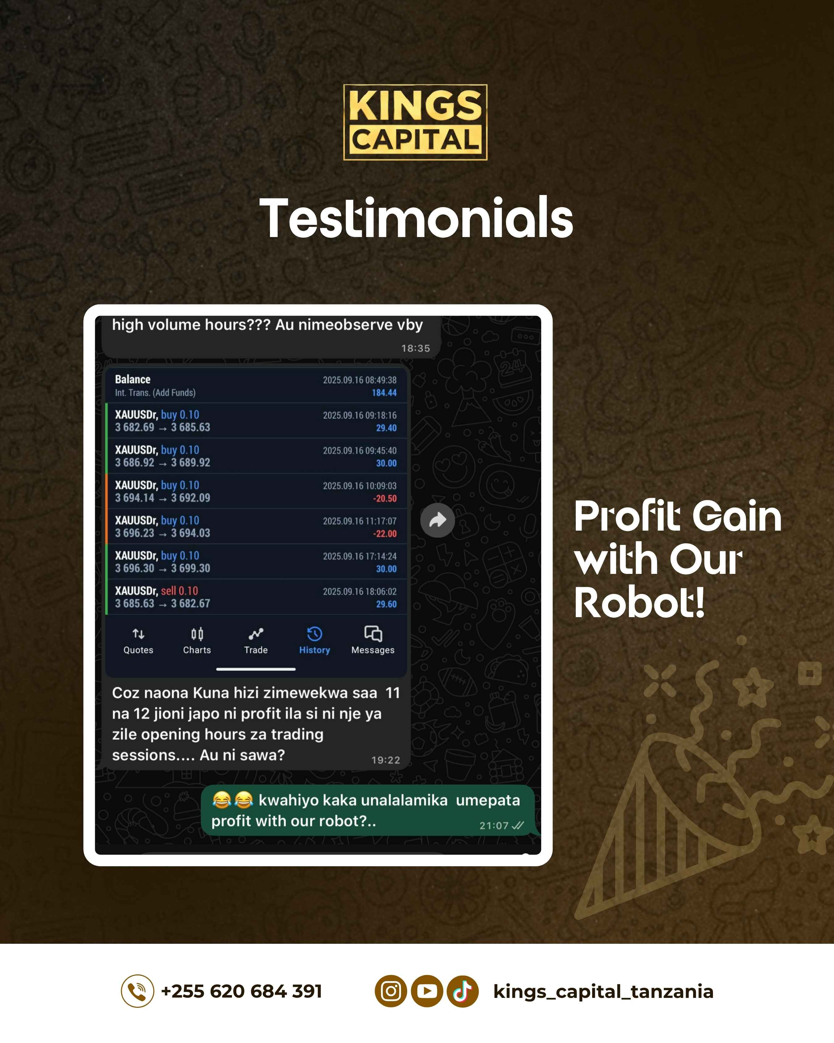 Welcome to Kings Capital, the premier platform for aspiring and experienced traders in Tanzania and beyond. We provide the tools, knowledge, and support you need to conquer the markets.