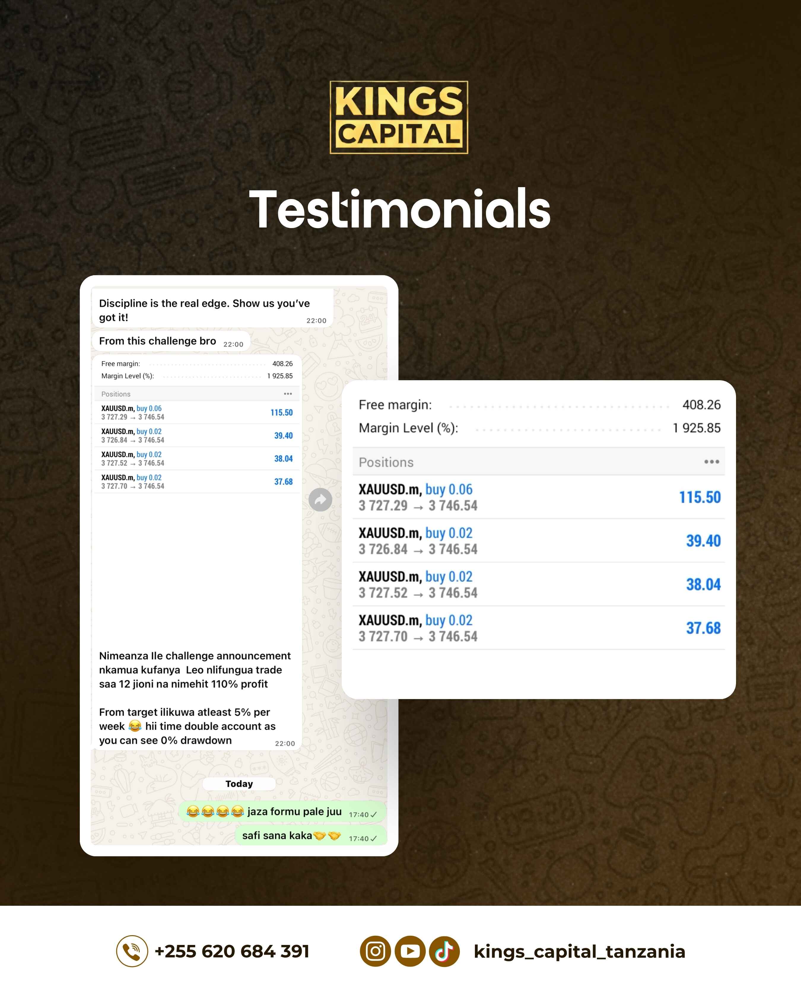 Kings Capital is a premier forex trading education and service provider based in Tanzania, dedicated to empowering traders with the knowledge, tools, and support needed to succeed in the financial markets.